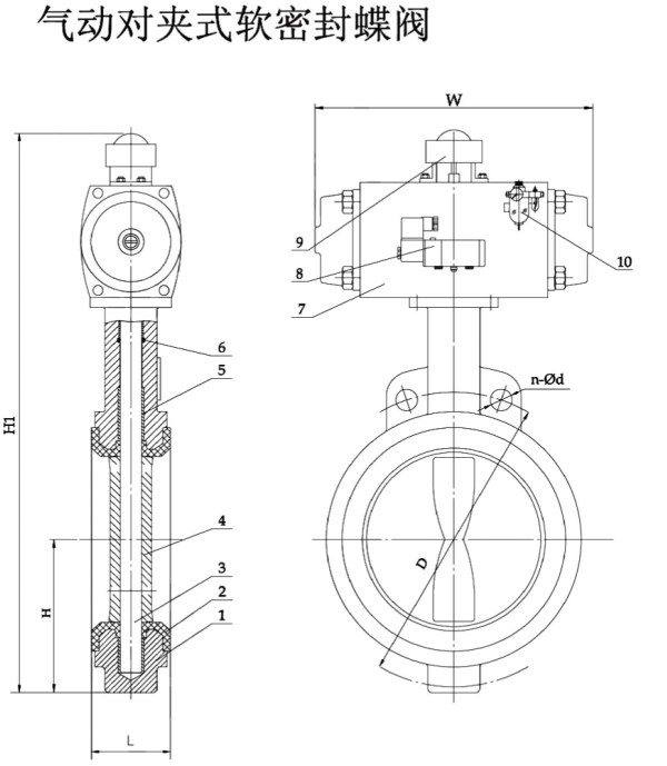 產品名稱:D672X氣動對夾式軟密封蝶閥
